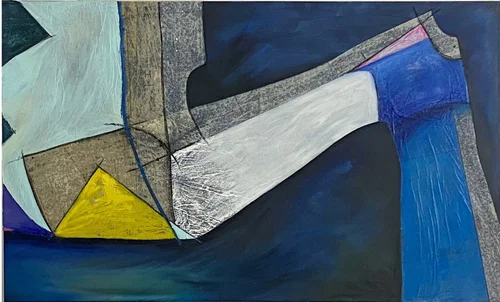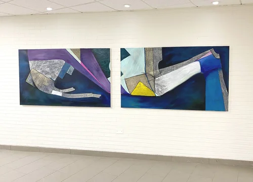 SUBMERGES / 66” x 72” / 2024 - mixed media collage, acrylic paint, oil stick, charcoal on stretched canvas / AVAILABLE currently ON LOAN 2025